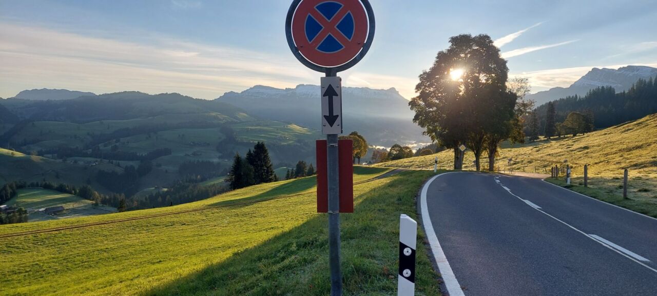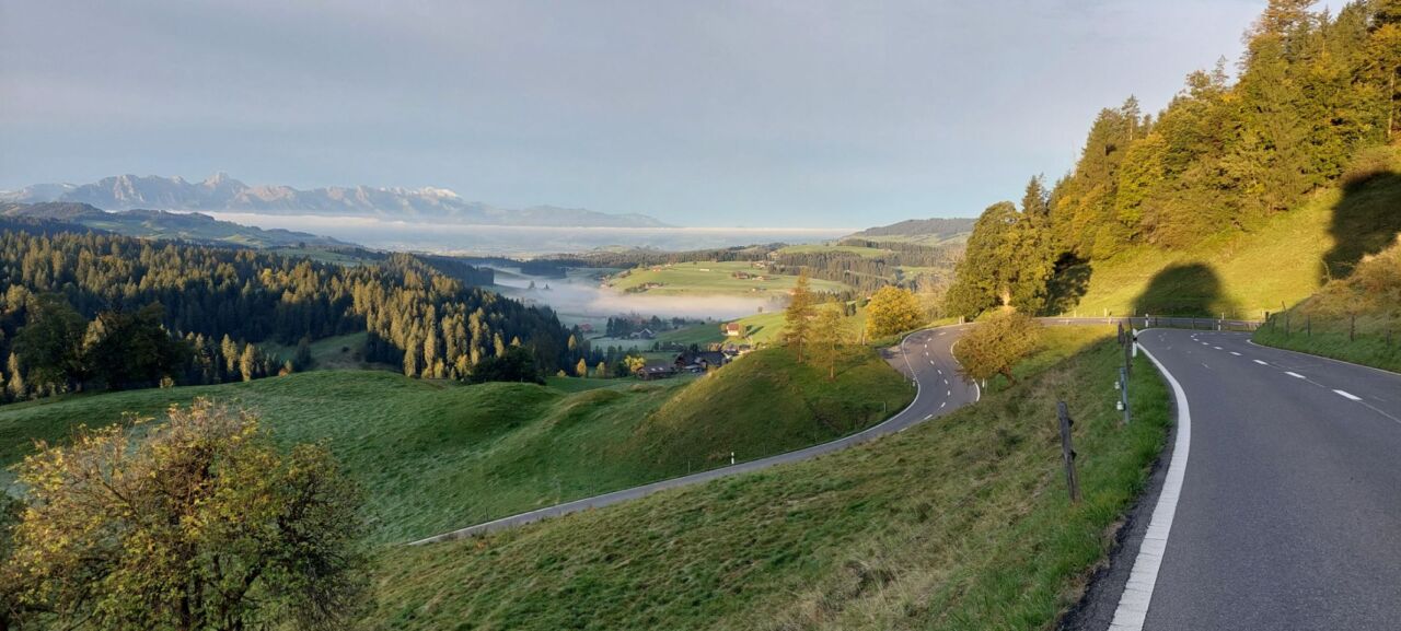 Die Schafe, Kühe scheinen Eisgras zu verspeisen und sehr viele Kamine rauchen wunderschön in die tiefen Kondenswölkchen (siehe Bilder) 3 Fotohalte bis zum Schallenberg